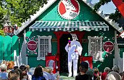 Commedia dell'arte is performed seasonally in Denmark on the Peacock Stage of Tivoli Gardens in Copenhagen, and north of Copenhagen at Dyrehavsbakken.[51] Tivoli has regular performances, while Bakken has daily performances for children by Pierrot and a puppet version of Pulcinella resembling Punch and Judy.[52][53]