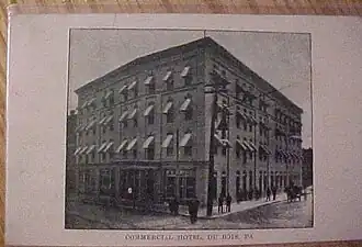 Commercial Hotel, also known as the General Pershing Hotel, was a historic hotel and theater complex located in DuBois, Pennsylvania, United States. The four story brick structure opened as a two-story hotel with 58 rooms in 1889. It was enlarged to four stories and 100 rooms with an expansion in 1901. The 700 seat Harris-DuBois Theater, later the DuBois Playhouse, opened in 1937.[2] The building has been demolished.