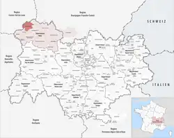 The communauté de communes du Pays de Tronçais is a communauté de communes, located in the Allier department of the Auvergne-Rhône-Alpes region of France. Created in 1999, its seat is in Cérilly.[1] Its area is 495.6 km2, and its population was 7,469 in 2020.[2]