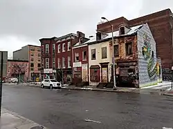 408 Park Avenue in Baltimore's Chinatown, February 2019. The building on the right with the Chinese dragon artwork was once the headquarters of the Communist Party of Maryland.