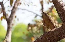There are over 500 species of birds, of which roughly 20% are inter-African migratory birds and another 5% palearctic migratory birds. Some prominent bird species include the Denham's bustard, yellow-casqued hornbill, brown-cheeked hornbill, hammerkop, black-winged stilt, various raptors, four of the six West African stork species and five vulture species. The park also contains 36 out of the 38 of the iconic bird species found in Sudo-Guinean savannas.[3] The reserve has been designated an Important Bird Area (IBA) by BirdLife International because it supports significant populations of many bird species.[12]