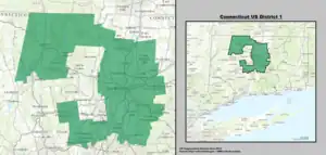 For the 118th and successive Congresses (based on redistricting following the 2020 census), Connecticut's 1st district contains portions of four planning regions and 27 municipalities.[3]