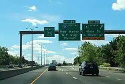 | 17.53– 17.63 | 28.21– 28.37 | 40 | 17 | Signed for US 7 southbound, Main Avenue northbound; signed as exits 17B and 17C northbound, exits 17A and 17B southbound | |||
