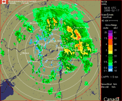 Reflectivity Cappi at 1.5 km altitude from Montréal radar (Source Environment Canada)