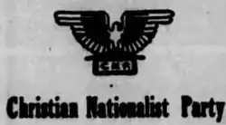 The Constitution Party, or the Christian Nationalist Party or America First Party in some states, was a loosely organized far-right third party in the United States that was primarily active in Texas, founded in 1952 to support former General Douglas MacArthur for president and drafted other prominent politicians for presidential elections, or attempted to.[1] The party gave its support or presidential nominations to other right-wing presidential candidates or military figures until its dissolution sometime in the 1970s.