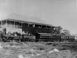 The first railway built in Queensland ran from Ipswich to Dalby. This line was opened to Bigge's Camp (now Grandchester) on 31 July 1865. It extended to Gatton in 1866 through multiple tunnels including the Victoria Tunnel, to Toowoomba in 1867 and to Dalby in 1868.[5] The railway was extended from Ipswich to Brisbane in 1876.[6] The line from Dalby had been extended to Chinchilla in 1878, Roma in 1880, Charleville in 1888 and Cunnamulla in 1898.