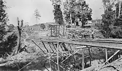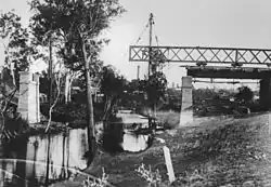 Although Parliament approved the construction of a further 48 kilometres (30 mi) of the line in 1888, the pause resulted in the subsequent economic downturn depriving the project of construction funds. The exception was the construction of the bridge over the Laura River, which was built by day labour. No rails were laid beyond the bridge, and it was only used by the occasional excursion train as a feature of the excursion. A pier and 2 spans were destroyed in a flood in 1940, and the remaining 3 spans were sold to a sugar tramway in the 1950s.