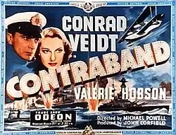 Contraband is a 1940 wartime spy film by the British director-writer team of Michael Powell and Emeric Pressburger, which reunited stars Conrad Veidt and Valerie Hobson after their earlier appearance in The Spy in Black the previous year. On this occasion, Veidt plays a hero, something he did not do very often, and there is also an early (uncredited) performance by Leo Genn.
