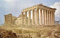 - Parthenon in Athens: Some time before the close of the fifteenth century, the Parthenon became a mosque. Before that the Parthenon had been a Greek Orthodox church. Much of it was destroyed in a 1687 explosion, and a smaller mosque was erected within the ruins in 1715; this mosque was demolished in 1843. See Parthenon mosque.