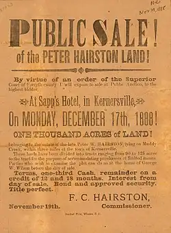 - ^ Hairston, Peter Wilson (1986). The Cooleemee Plantation and Its People. Davidson County Community College. ISBN 0894592467.