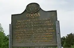 Hernando de Soto and his conquistadors visited Coosa on their expedition through the Southeast United States in 1539–1541, as did participants in Tristán de Luna's expedition in 1560, and Juan Pardo's 1566–1568 expedition.[3] The Europeans recorded descriptions and impressions of the various chiefdoms they visited, describing Coosa as a series of communities and fertile gardens containing much food, rather than a town or city.[4]
