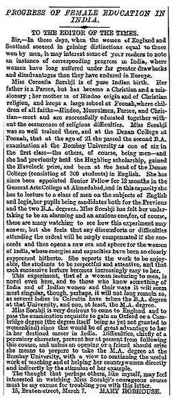 5. ^ a b c "Miss Cornelia Sorabji". The Times. London. 8 July 1954. p. 10.