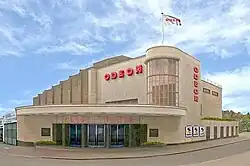 The Coronet Cinema on Well Hall Road, by Well Hall Roundabout in Well Hall, Eltham, London, is a grade II listed building with Historic England in the streamline moderne style. It was designed by Andrew Mather and Horace Ward for Odeon Theatres and opened in 1936.[1] In 1981 it became the Coronet Cinema but closed in 2000. The building became derelict and remained unused for over a decade, but was eventually converted and extended into 53 flats and a parade of shops, including a Tesco Express,[2] and a gym and fitness centre. However, the main front of the building remains intact.[3][2]