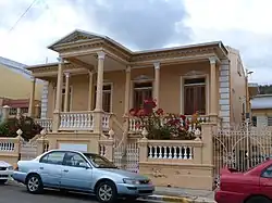 The Casa Paoli was built c. 1864 and is located on 2648 Calle Mayor,[30] Barrio Cuarto in Ponce. It is nationally significant as the birthplace of Antonio Paoli Marcano, who became an internationally acclaimed tenor and opera singer. He performed and was widely praised in Europe and the Americas, including Caribbean islands. The house had been a wedding gift for Paoli's parents, who married at the Ponce Cathedral after the birth of the first five of their eight children. (His maternal grandfather had initially opposed the marriage because his daughter was much wealthier than Paoli's immigrant Corsican father. The couple eloped together.) Antonio, their seventh child, was born in this house, as were two of his siblings.[31] In 2009, Casa Paoli was included in the National Register of Historic Places.