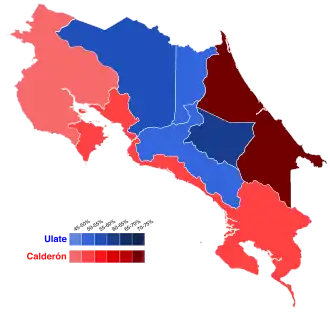 General elections were held in Costa Rica on 8 February 1948.[1] Otilio Ulate Blanco of the National Union Party won the presidential race with 55% of the vote, defeating former president Rafael Ángel Calderón Guardia of the ruling National Republican Party, which had governed since 1932. Alleging electoral fraud, Calderón’s supporters in Congress annulled the results, triggering the six-week Costa Rican Civil War later that year.[2][3]