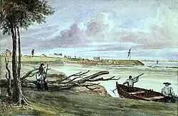 ![]() Remains of military fortifications with the waterway in the distance | |