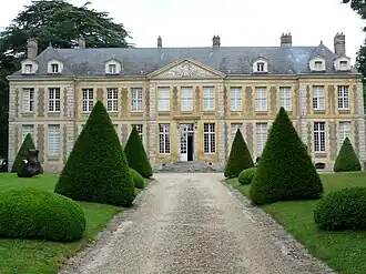 The 80 hectares (200 acres) Coubertin estate is located in the valley of Chevreuse in Saint-Rémy-lès-Chevreuse, in the French countryside.[6][7] The entrance to the estate opens onto a linden-shaded driveway leading to the palace gate. Behind the gate, a French driveway leads to a castle of the late seventeenth century, with a sober facade. To the right of the castle, below, is the garden of bronzes and behind the castle, an English park. The castle is listed as a historical monument by decree of 7 September 1945.[8]