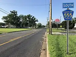 County Route 555 (CR 555) is a county highway in the U.S. state of New Jersey. The highway extends 34.20 miles (55.04 km) from Port Norris Road (CR 553) in Downe Township to Black Horse Pike (Route 42) in Washington Township in Gloucester County.