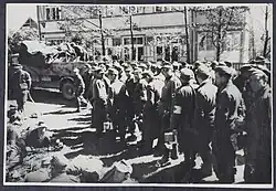 German prisoners of the war captured in the pocket being marched through Riga, May 1945