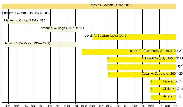 | 6 | Estanislao Alvarez | AJ | January 1966 | Marcos, Sr. | Alfurong | Umali (acting) | January 1976 |