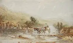 The origins of cowboy culture go back to the Spanish vaqueros who settled in Santa Fe de Nuevo México and Spanish Texas, bringing cattle.[2] By the late 1800s, one in three cowboys were Mexican, and brought to the lifestyle its iconic symbols of hats, bandanas, spurs, stirrups, lariat, and lasso.[3] With westward movement brought many distinct ethnicities all with their own cultural traditions. Welsh Americans, as one example, had a history in Wales of cattle and sheep droving, that incorporated well into ranch work.[4]