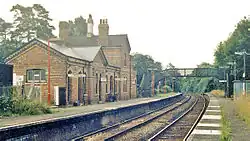 The station was destaffed in the 1990s. When the line was singled in 1990 the "up" platform was taken out of use and all trains now use the former "down" platform. The track is not electrified, so only diesel or steam trains can run.