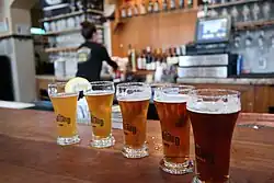 Beer flight at Portland Brewing Co. in Portland, Oregon