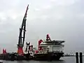 A crane vessel, crane ship, crane barge, or floating crane is a ship with a crane specialized in lifting heavy loads, typically exceeding 1,500 t (1,476 long tons; 1,653 short tons) for modern ships. The largest crane vessels are used for offshore construction.[1]