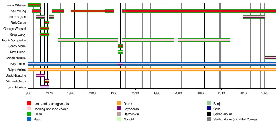 • Neil Young – lead vocals, lead guitar, keyboards, harmonica (1969–1970; 1973–1976; 1978–1987; 1990–present)