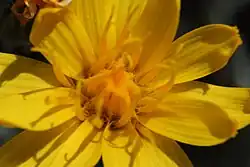 The inflorescence bears one to ten flower heads about 5 cm (2 in) in diameter[4] with rough or bristly phyllaries and up to 60 yellow ray florets but no disc florets.