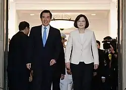 In the 2016 Taiwanese general elections, Tsai Ing-wen and the DPP captured landslide victories.[122] Tsai initially pursued a similar strategy as Chen Shui-bian, but after winning the election she received a similarly frosty reception from the PRC.[123][124][125] On 12 March 2016, Xi stated that the 1992 Consensus was "the greatest common denominator and political bottom line for the peaceful development of cross-strait relations".[42]: 13