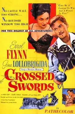 Crossed Swords or The Teacher of Don Juan (Italian: Il Maestro di Don Giovanni) is a 1954 historical swashbuckling adventure film directed by Milton Krims and starring Errol Flynn, Gina Lollobrigida and Nadia Gray. It was co-production between Italy and the United States. It was shot at the Cinecittà Studios in Rome. The film's sets were designed by the art director Arrigo Equini.