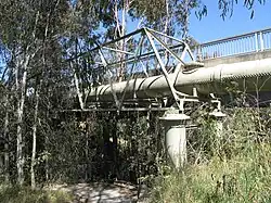 | Fairfield Pipe Bridge | Pipeline/Footbridge | - | 1878 | Fairfield/Kew | The original bridge was built in 1878 to carry water from the Yan Yean Reservoir to Kew. Washed away in the floods of 1934. A new pipe bridge was built close to the site. The pylons of the original bridge were later demolished and no signs remain of the first pipe bridge. | |