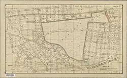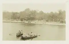 The park did not receive many improvements until the 20th century.[14] Indian Lake's perimeter was paved in the early 1900s, and an ice-skaters' concession stand and a warming hut were installed.[17] In addition, landscaping work was performed, and a new grandstand for concerts and ball games was erected.[14] Three hundred American elms were planted around the lake in 1903.[13][18] Two years later, an athletic field for the New York City Department of Education was built.[19] A bill was introduced in the Assembly in 1909, which would install a New York National Guard armory in Crotona Park.[20] The bill was heavily denounced by the public,[21] and though both the Assembly and Senate passed the bill,[22][23] mayor George B. McClellan Jr. vetoed it.[24] Crotona Park was expanded via land acquisition in 1907 and 1911,[14] and extra tennis courts were added in 1915.[25] A concrete wall around the lake's perimeter, as well as lamps and paths, were installed in 1914.[17] A "farm garden", to teach children about farming, was added in 1928.[18]