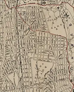 By 1911, local landowners complained that the sporting events at the athletic field and bandstand were too loud.[26] They requested that the field be moved further within Crotona Park.[27] In 1916, several local landowners filed a lawsuit, calling the athletic field and bandstand "nuisances" that were not conducive to park operation.[28] Some of these landowners alleged that they could not sell their property.[19]