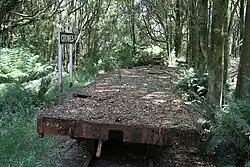 It consisted of a platform track and two loop sidings, with No. 3 Road servicing a pig race and a ramped goods platform. A four-chain curve beyond the yard ended with a standard narrow-gauge buffer stop in front of a huge tree stump.[3]