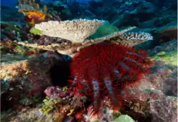 - ^ a b c Moran, P. J (1986). "The Acanthaster phenomenon". Oceanography and Marine Biology. 24: 379–480. INIST 8358915 NAID 10027122155. Republished as: Moran, Peter John (1988). The Acanthaster Phenomenon. Australian Institute of Marine Science. doi:10.5962/bhl.title.60630. ISBN 978-0-642-13250-5.