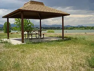 Crown Hill Park is a 242-acre (0.98 km2) recreation area operated by Jefferson County Open Space in unincorporated Jefferson County, Colorado. The park is located between the cities of Wheat Ridge and Lakewood. Within the borders of the park is a National Urban Wildlife Refuge. Activities at the park include picnicking, hiking, biking, horseback riding, wildlife viewing, walking, roller blading, jogging, and fishing.