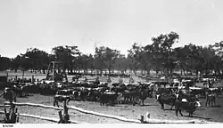 The owner of the property in 1890 was James Cowan who, along with another man named Bullimore, was killed in a railway accident the same year.[7] The property occupied an area of 4,500 square miles (11,655 km2) and was stocked with approximately 7.000 head of cattle and was being managed by Mr Ross.[2] Drought struck the area in 1892 but this was followed by successive good seasons from 1893 to 1897.[8] By 1910 the owner of the property was Horace Cowan and it was being managed by Richard Taylor.[9]