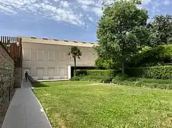 The structure today consists mainly of a large square hall, measuring approximately 6 meters per side.[2] The hall overlooks the Plaza de los Campos below on the southwest and is built on top of a bastion tower which was formerly part of the city walls. The tower itself was enlarged in order to serve as foundation for the hall.[1][2] The walls protected the Alfareros ("Potters") suburb of the city, now corresponding to the Realejo neighbourhood.[5][4] The palace was thus built on the edge of the city and was essentially a country estate, originally of much larger size than what remains today.[2] The estate and its gardens would have been enclosed by their own walls to preserve the privacy of its royal owners.[3]