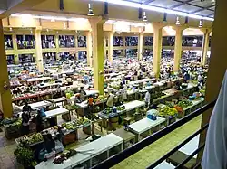 Primary food crops include bananas, breadfruit, taro, maize, beans, papaya, palm oil, and primary agricultural production crops for export include cocoa, copra and coffee.[1][3] Fish and seafood is prominent in São Tomése and Príncipe cuisine, and the fishing industry contributes approximately 25 percent to the country's gross domestic product.[1][4] Poultry is also raised in São Tomé and Príncipe.[1]