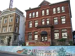 The 70-seat Staircase Cafe Theatre[11] on Dundurn Street North provides space for a variety of cultural activities. The Staircase originally was opened by Hugh MacLeod in 1998, evolving and expanding from an improvisational comedy workshop to include an artist's gallery, a cafe, a theatre for film and live acts, and a rehearsal space. A former variety store next door was also acquired. The store has been converted into an additional multi-purpose space on the lower level, and houses Think|Haus, Hamilton's Hackerspace, on the upper level.[12]