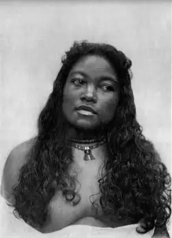 The men wore a fringe skirt of native materials about 25 to 30 inches (60 to 80 cm) long. Women traditionally[4] wore two mats about a yard (metre) square each, made by weaving pandanus and hibiscus leaves together,[2] and belted around the waist.[5] Children were usually naked.[2]