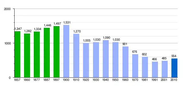 As on 1 January 2010 the population of the town was 554 inhabitants, 292 males and 262 females.[3]
