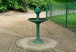 Poet Dylan Thomas grew up near the park at 5 Cwmdonkin Drive. This semi-detached house, in which Thomas was born and lived until he was 23, is where he created two-thirds of his published work.[9] The house had been bought by his parents in August 1914 when it was newly-built, and Dylan was born in the front bedroom later that year on 27 October.[10][11]