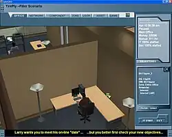 The game is designed as a "construction and management simulation" set in a three-dimensional virtual world. Players build networks and observe virtual users and their thoughts. Each scenario is divided into multiple phases, and each phase includes one or more objectives the player must achieve prior to moving on to the next phase. Players view the status of the virtual user’s success in achieving goals (i.e., accessing enterprise assets via computers and networks). Unproductive users express unhappy thoughts, utter comic book style speech bubbles and bang on their keyboards. Players see the consequences of attacks as lost money, pop-up messages, video clips and burning computers.