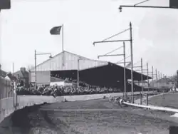 On 21 June 1936, the first speedway meeting of the season was held and one month later on 12 July a Dagenham team rode a match against Leicester Super. When speedway was held the venue it was known as Ripple Road.[5] Speedway and greyhounds continued throughout 1937 and 1938 and the Dagenham speedway team, nicknamed the Daggers, competed in the Sunday Dirt-Track League with, Smallford, Eastbourne and Romford, the latter also riding at Ripple Road.[6][7] Crashes killed two riders in quick succession at the track, the first was Harry Rogers on 17 May 1938[8] and less than three months later, David Jackson was killed on 11 August 1938.[9]