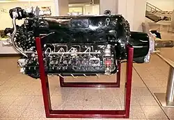 The Daimler-Benz DB 603 was a German aircraft engine used during World War II. It was a liquid-cooled 12-cylinder inverted V12 enlargement of the 33.9 Liter DB 601, which was in itself a development of the DB 600. Production of the DB 603 commenced in May 1942, and with a 44.5 liter (44,500 cc) displacement, was the largest displacement inverted V12 aircraft engine to be used in front line aircraft of the Third Reich during World War II.