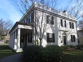 The Dana-Palmer House (also known as Dana-Peabody House)[2] is an historic house in Cambridge, Massachusetts. The two-story wood-frame house was built in 1823, and is basically Federal in its styling, although it has a Greek Revival porch. From 1835 to 1842 the building served as Harvard's astronomical observatory; from 1842 to 1947 as a faculty residence for several notable faculty; from 1947 to 2006 as an official visitor guest house; and after 2006 as home of Harvard's department of comparative literature.