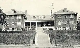 The building, constructed in 1925, was of a joisted masonry construction consisting of two stories with Colonial Revival detailing. The main entrance included a long terraced walkway beginning from the West King Street sidewalk leading to an entrance veranda. The building itself sat upon 10 acres (4.0 ha).[2]